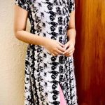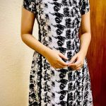 Be the first to review “Black & White Abstract Print A-Line Dress with Criss-Cross Neck”